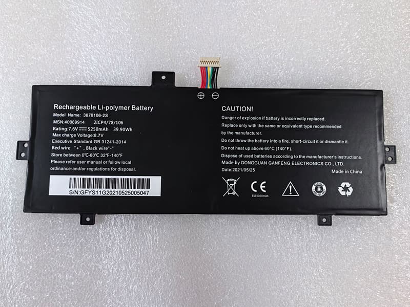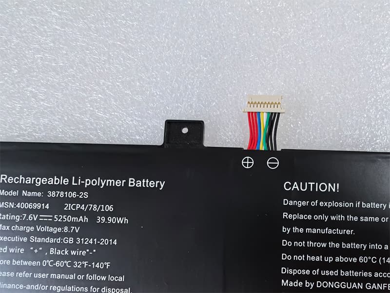 Capacité de la batterie: 5000mAh/38WH, Technologie batterie: Li-ion, Tension des piles: 7.6V.