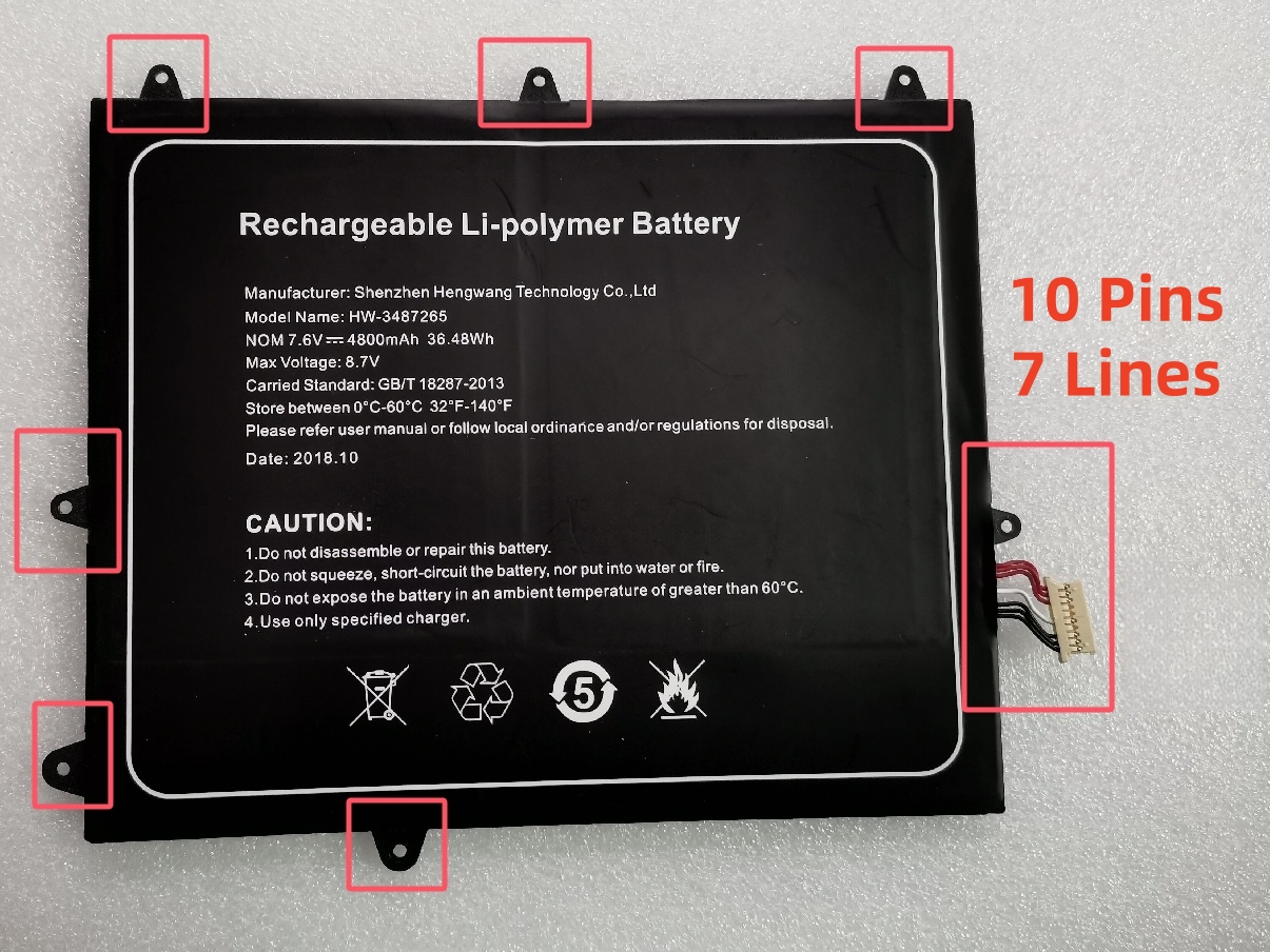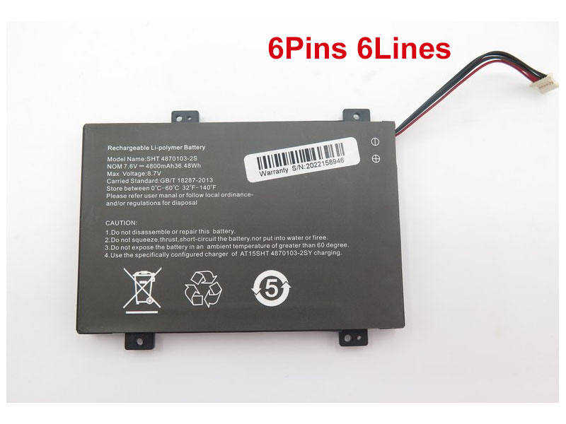 Capacité de la batterie: 4800mAh/36.48Wh, Technologie batterie: Rechargeable Li-Polymer, Tension des piles: 7.6V.
